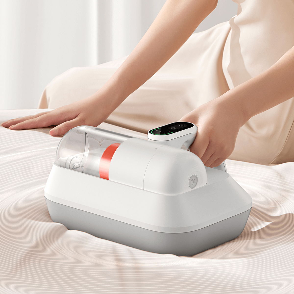 - Električna vibrujuća četka koja vrši do 48.000 udaraca/min za efikasno izbijanje grinja iz tkanina.